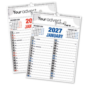 Our commercial range of calendars are our most basics and practical calendars. Highly useful for recording appointments with large areas to write in. They do not have any images, they are solely a functional calendar for displaying your company details (they come in a couple of sizes).