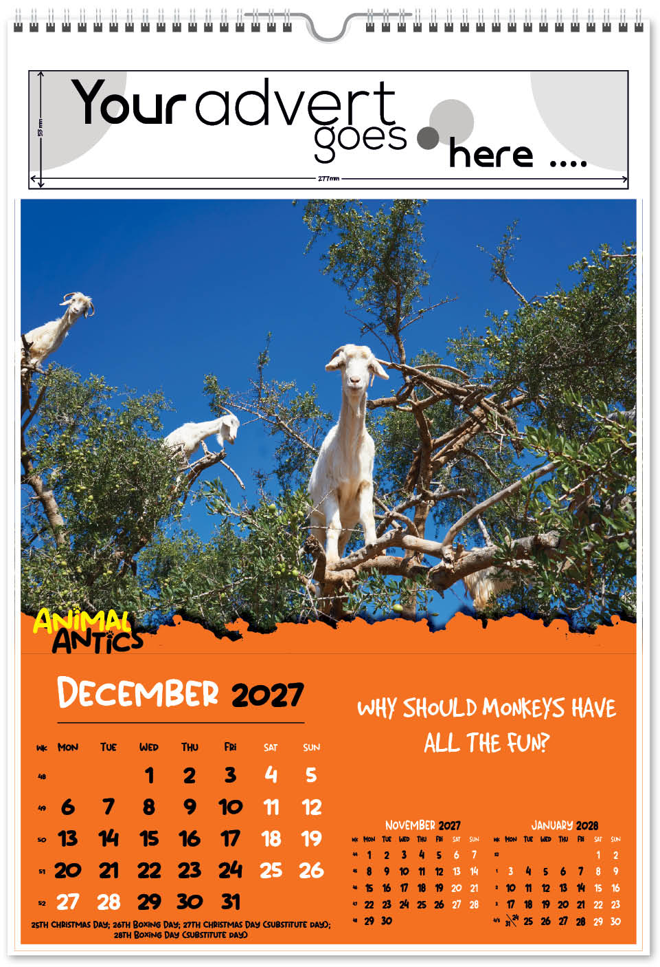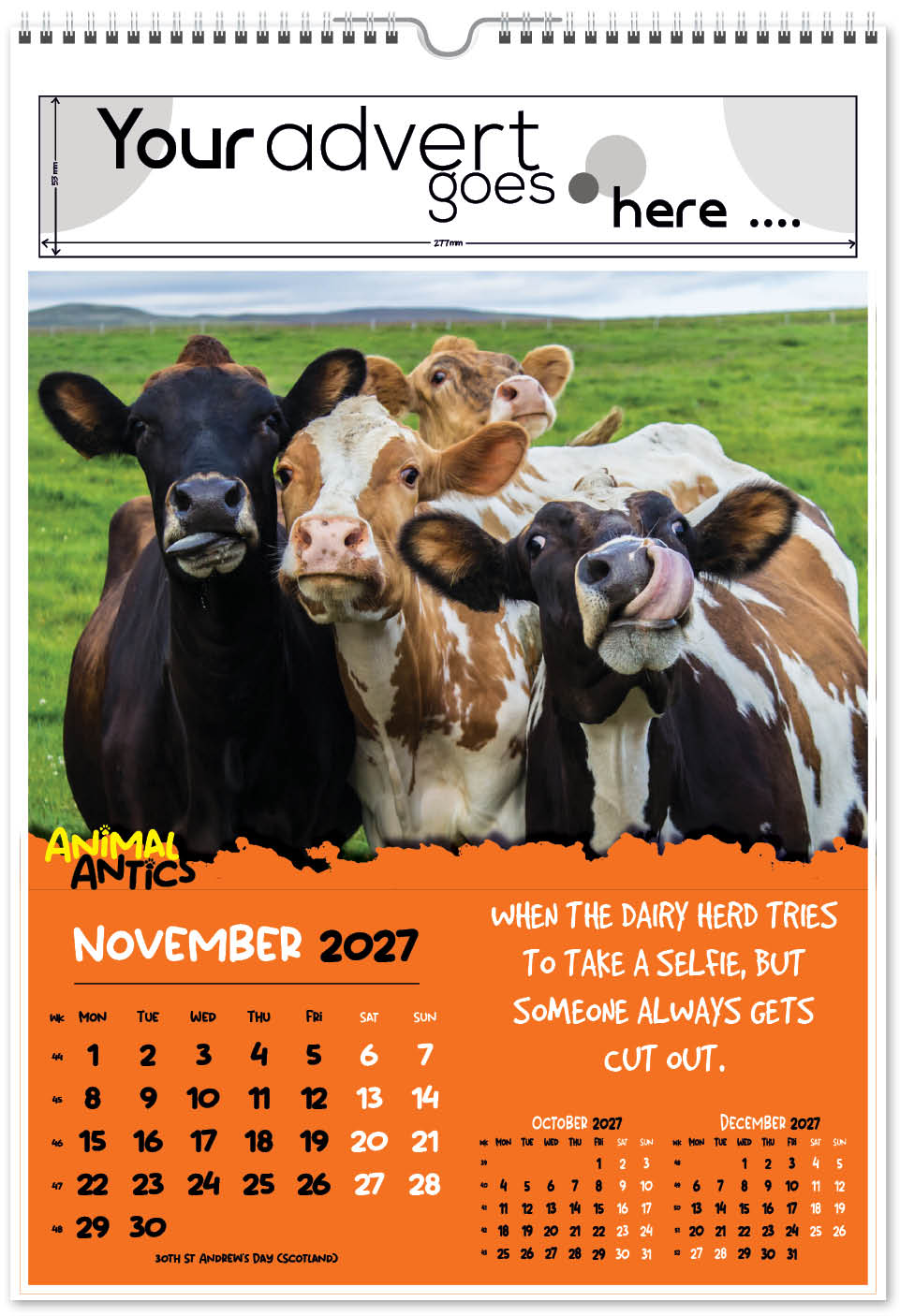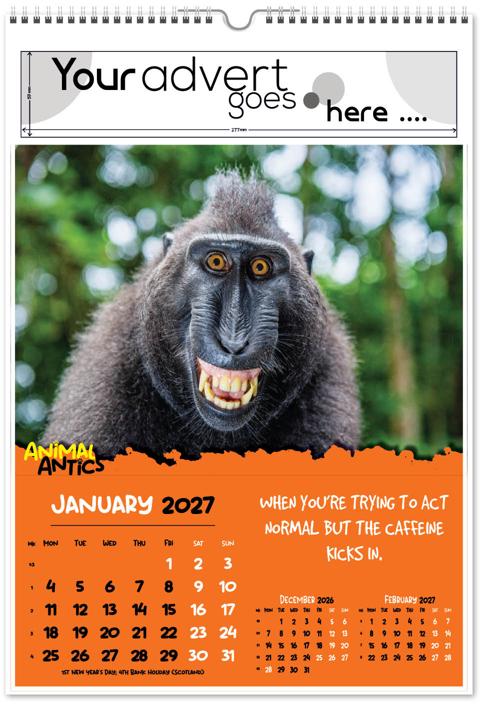 Laugh at the humorous antics of these lovable animals in our Animal Antics wall calendar. High Quality digital print for a quick turnaround.