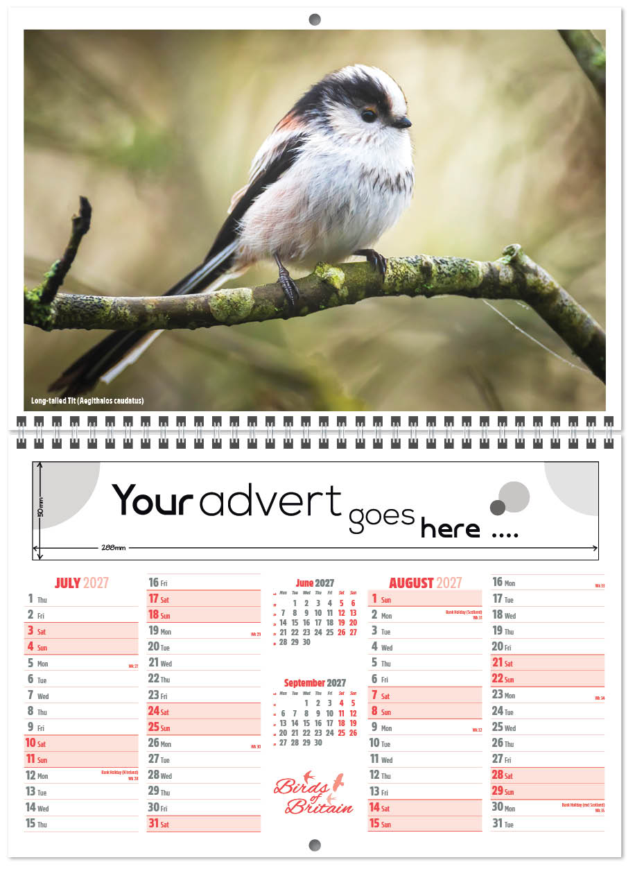 Each calendar comes with an advert section. It is this section that we replace with your personalised company advert that either we design for you, or you supply to us. This section can be seen on our range’s images titled “Your advert goes here”.