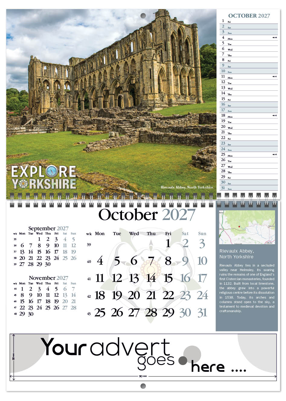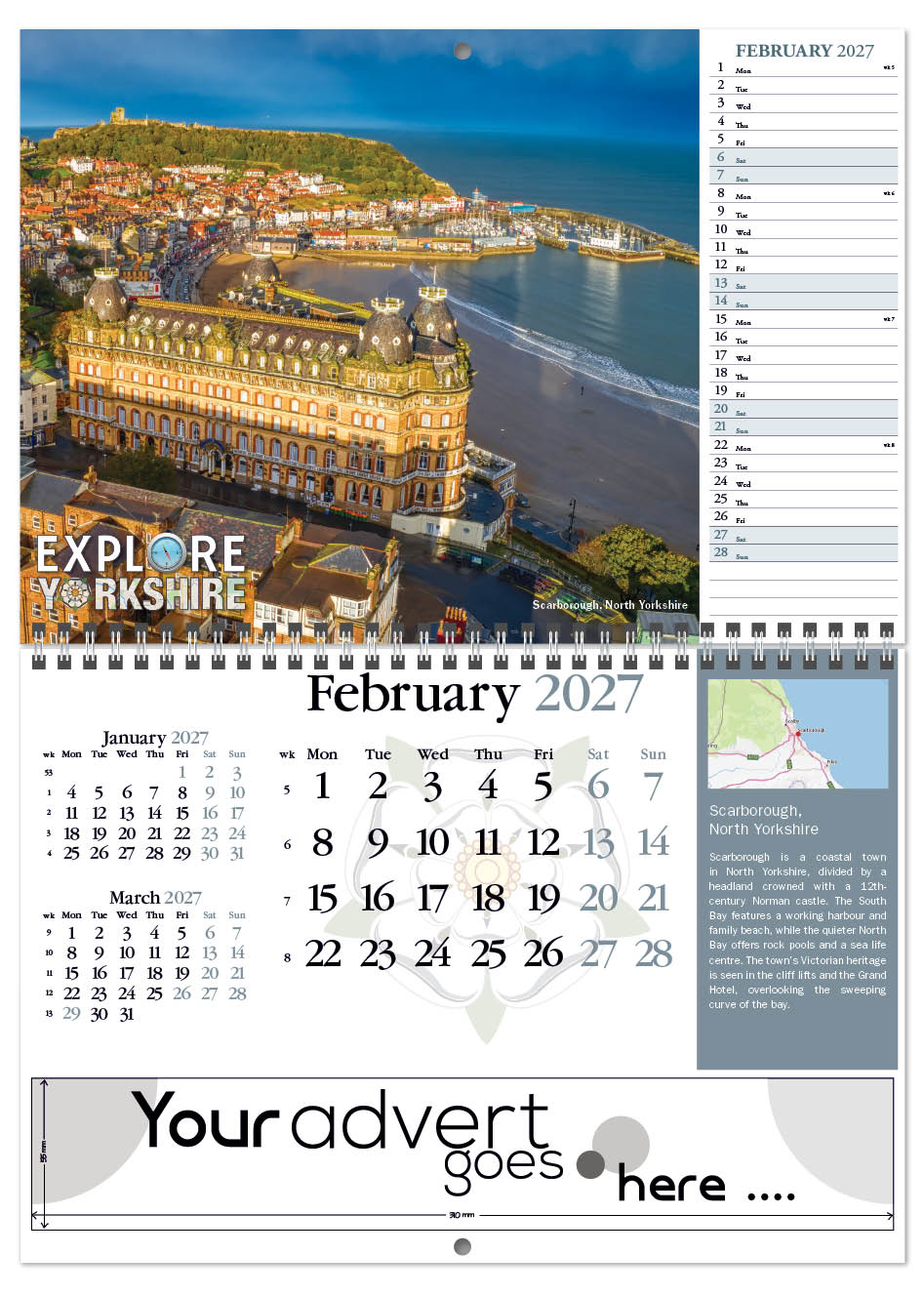 Explore Yorkshire Deluxe Central Wiro Wall Calendar