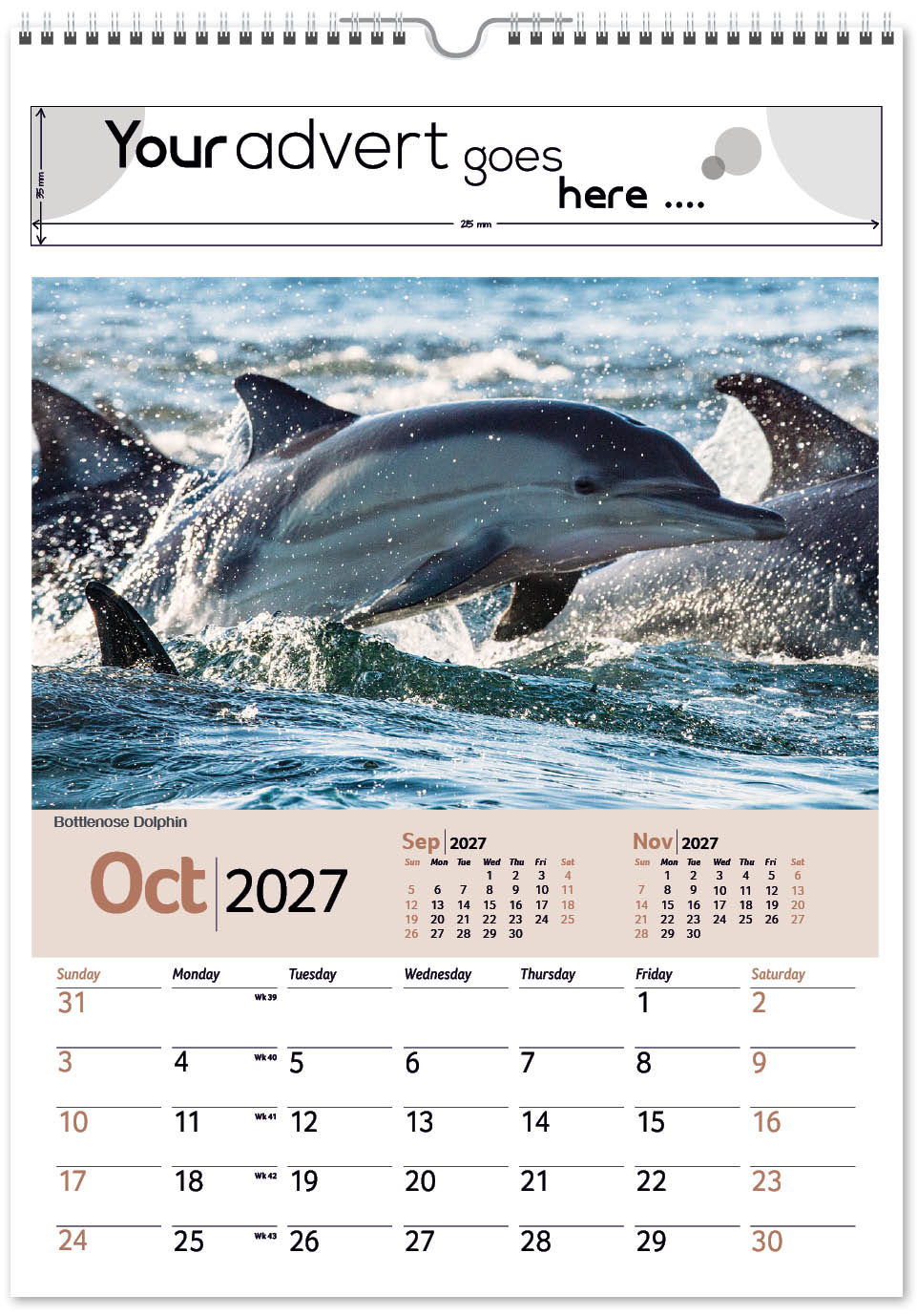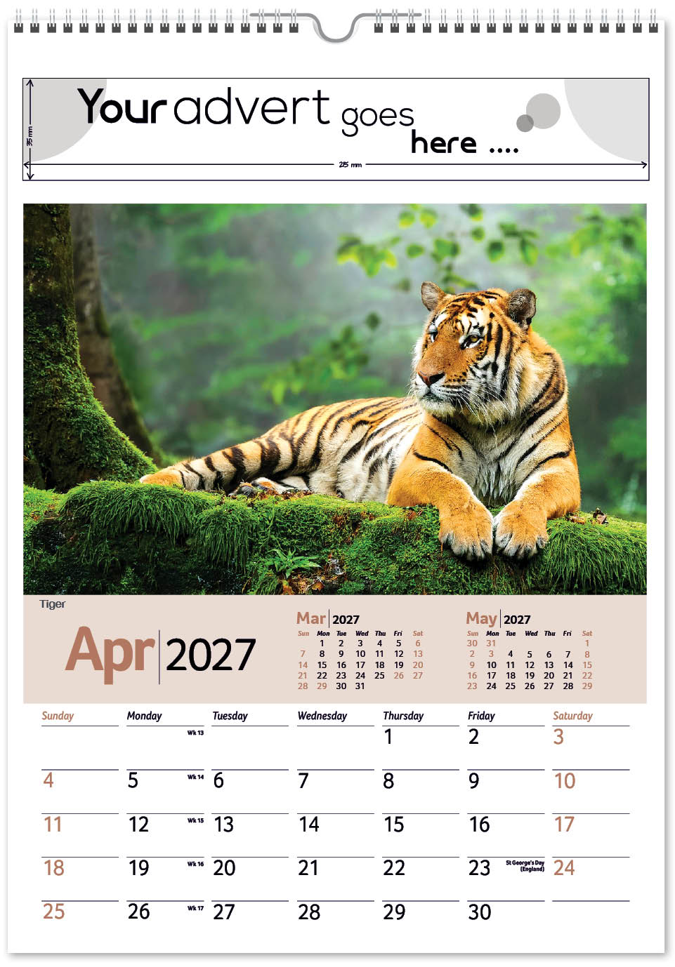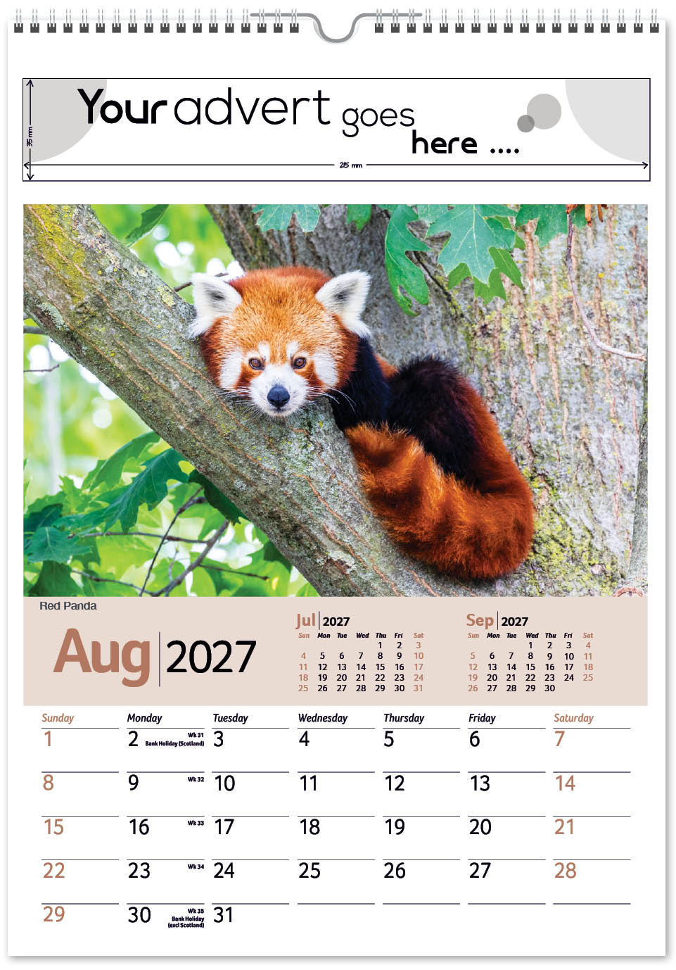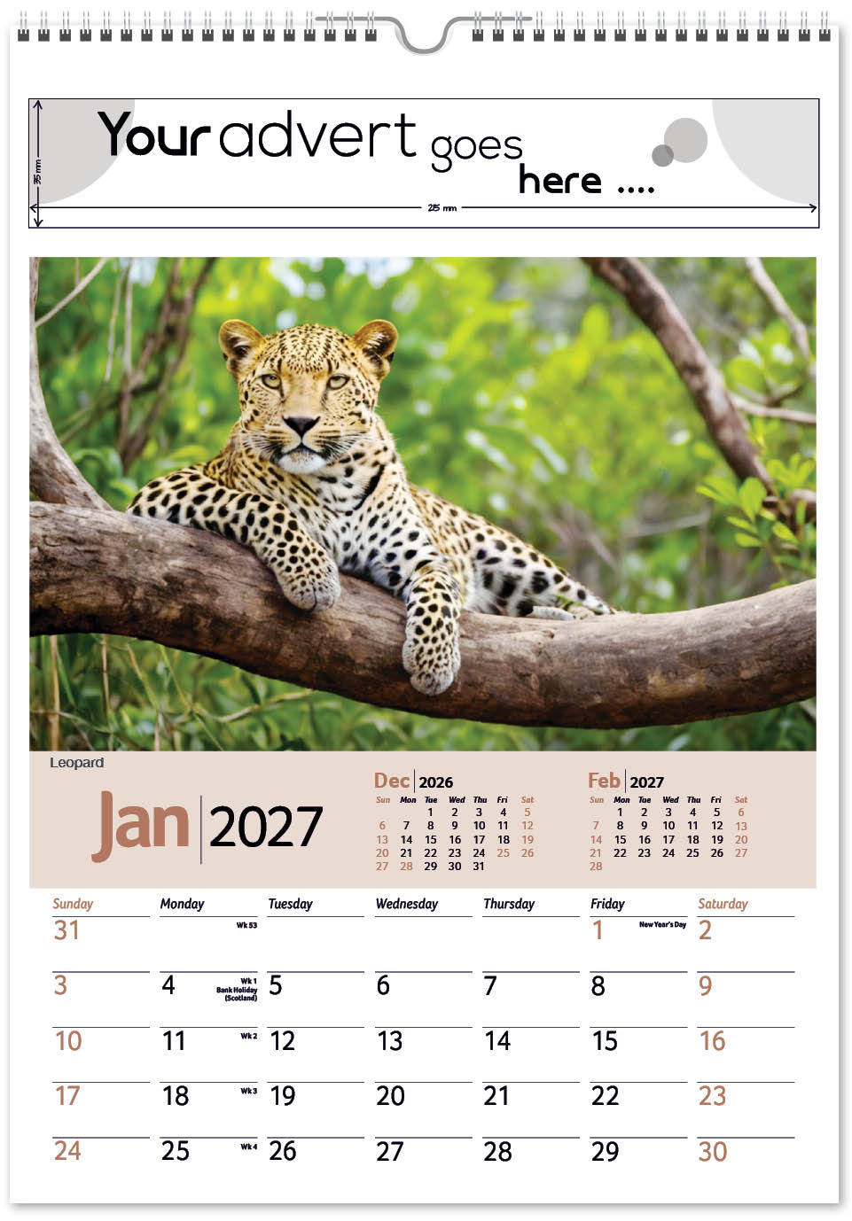 Each calendar comes with an advert section. It is this section that we replace with your personalised company advert that either we design for you, or you supply to us. This section can be seen on our range’s images titled “Your advert goes here”.