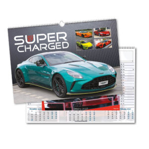 Our Deluxe Central Wiro range of calendars is designed to save you postage whilst still having a premium varnished calendar. When folded they fit into a Royal Mail ‘Large letter’ sized envelope so the saving on postage is substantial. Dynamic images of exclusive Supercars, selected for power, speed and performance, are showcased in the Supercharged Deluxe Central Wired Wall Calendar. This is one of our most popular categories of calendar. Each page features informative descriptions and technical data