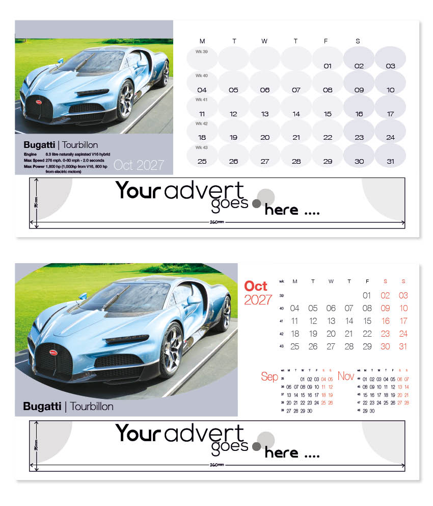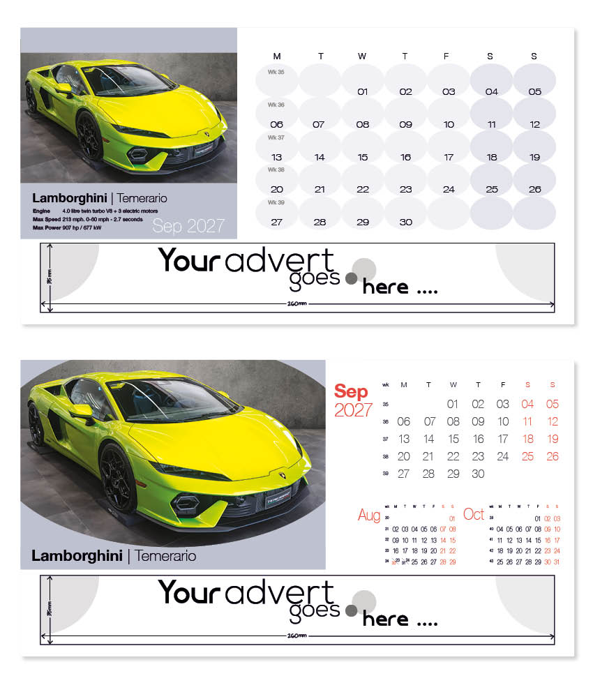 Dynamic images of exclusive Supercars selected for power, speed and performance are showcased in the Supercharged Desk Calendar. Our most popular category of calendar features useful informative descriptions and technical data. All our desk calendars are printed on both sides, each side in a different format – either a simple date pad with a larger image, or a space for notes and appointments with a slightly smaller image. The DiGi Range calendars are printed on demand so we will never run out of stock of any title, and the minimum quantity is as low as 10 calendars, and they save on postage – being Royal Mail ‘Large Letter’ size.