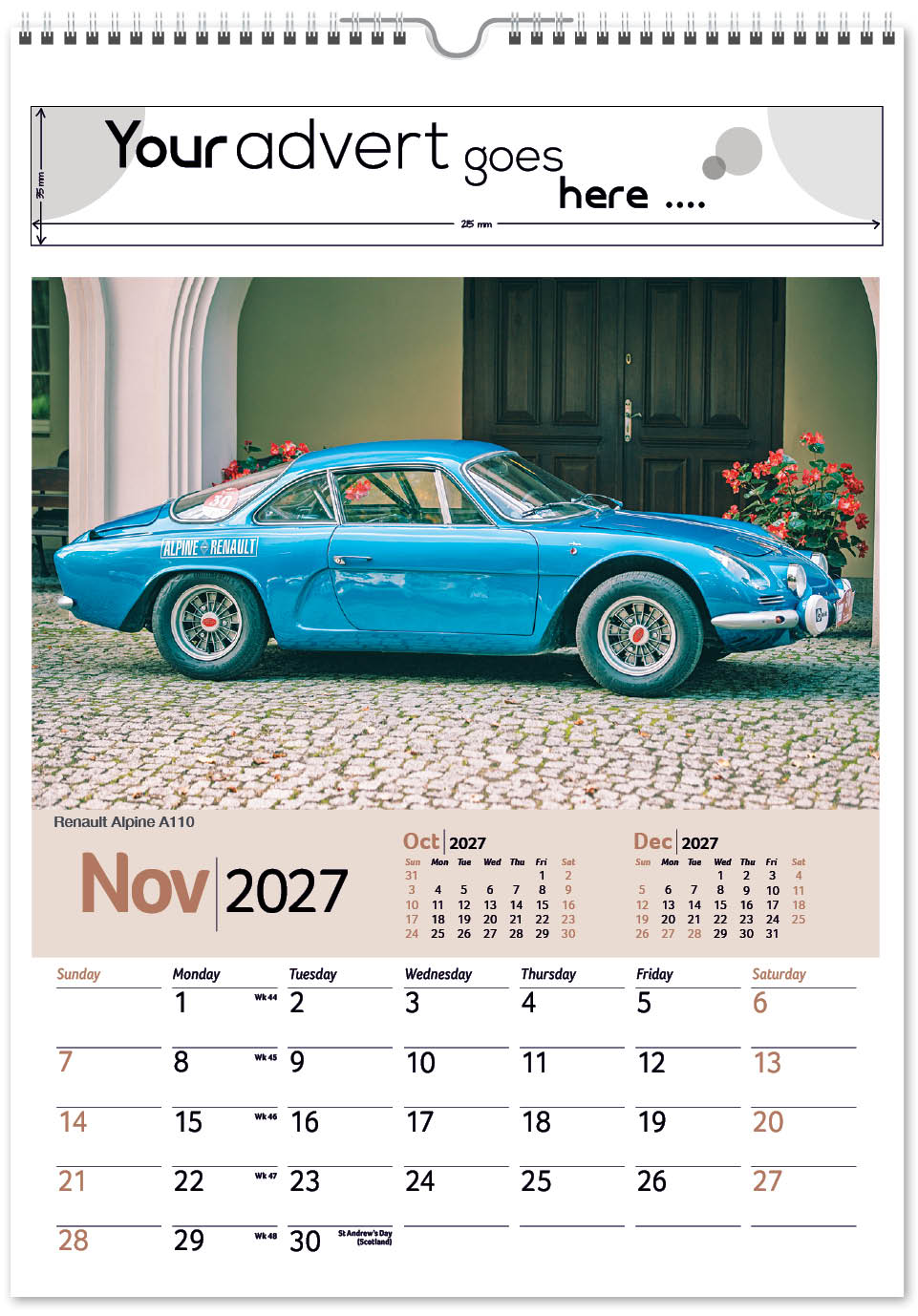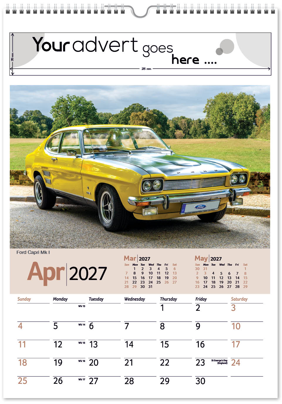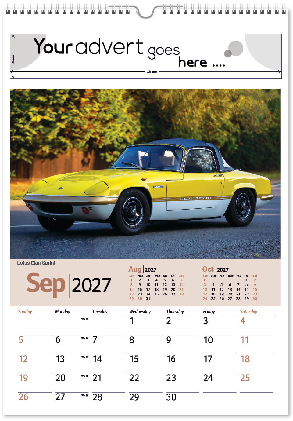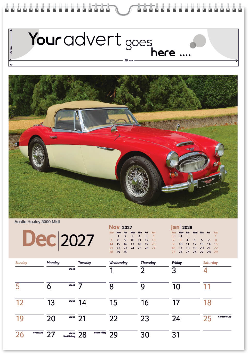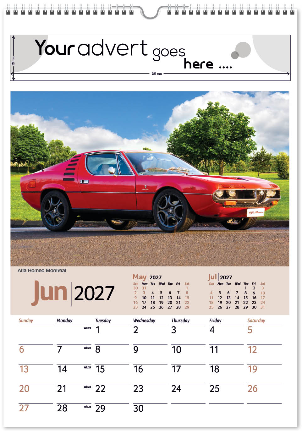 Each calendar comes with an advert section. It is this section that we replace with your personalised company advert that either we design for you, or you supply to us. This section can be seen on our range’s images titled “Your advert goes here”.